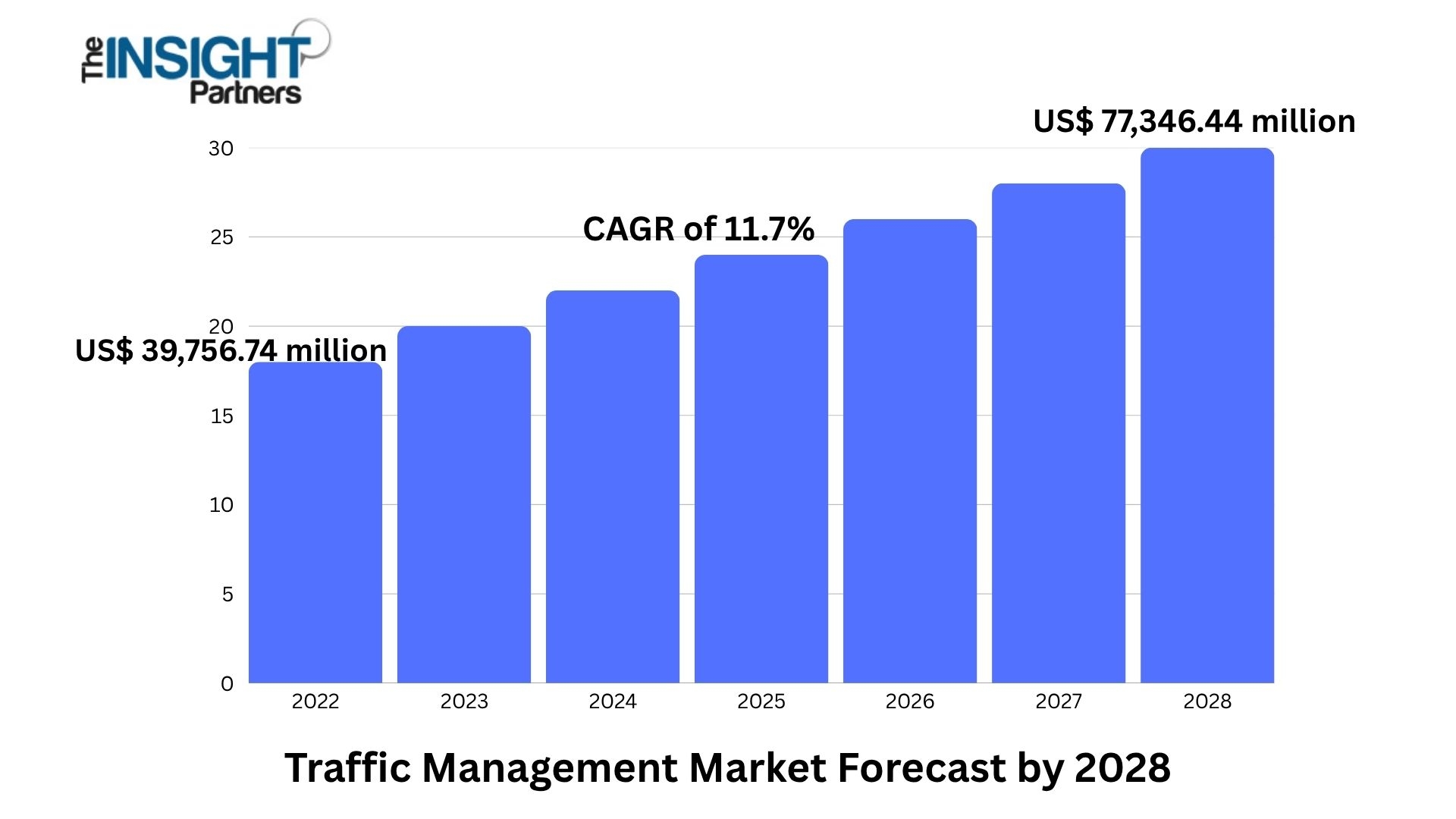 Historical Data: The Traffic Management Market is projected to reach US$ 77,346.44 million by 2028 from US$ 39,756.74 million in 2022; it is expected to grow at a CAGR of 11.7% from 2022 to 2028. These projections reflect the rising adoption of intelligent transportation systems and increasing urban congestion.