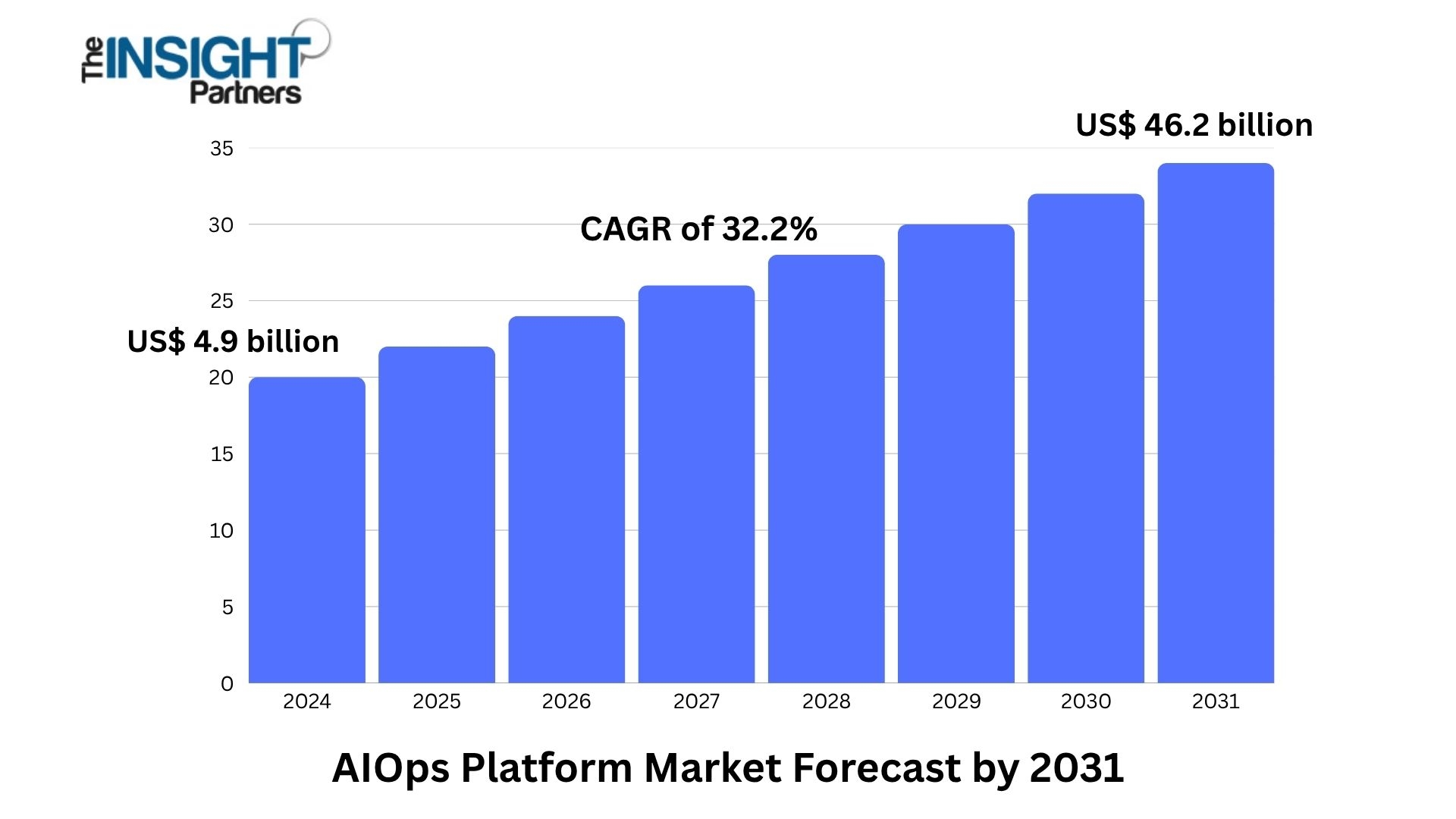 Historical Data: The AIOps Platform Market size is projected to reach US$ 46.2 billion by 2031, up from US$ 4.9 billion in 2023, registering a robust CAGR of 32.2% during 2023–2031.