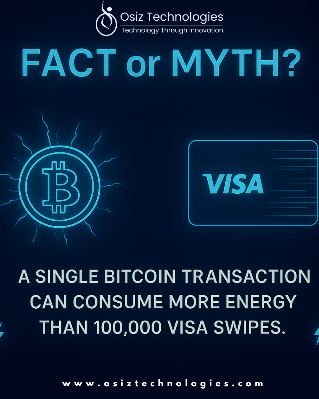 Bitcoin’s power consumption has been a hot topic — but does it really outshine Visa’s by 100,000x? 🔋 Before you decide, let’s explore how blockchain networks validate transactions, what drives energy use, and the efforts to make crypto more eco-friendly. 🌿 👉 Full breakdown at: https://www.osiztechnologies.com/blockchain-development-company #BlockchainDevelopment #GreenBlockchain #CryptoAwareness #BitcoinMining #CryptoInnovation #BlockchainFuture #TechEducation #DeFiSolutions #CryptoFacts #Web3World #DigitalEvolution #BlockchainSustainability #CryptoEnergy #FintechGrowth #OsizTechnologies